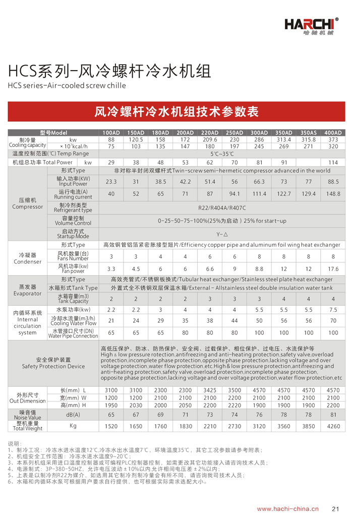 5、風(fēng)冷冷凝器全部采用進(jìn)口風(fēng)機(jī)及大風(fēng)量低噪音軸流設(shè)計(jì),換熱效率更高;風(fēng)冷系統(tǒng)無需配置冷卻水塔及冷卻水泵,安裝簡單,移動(dòng)方便,適合生產(chǎn)場地比較緊缺的環(huán)境使用;